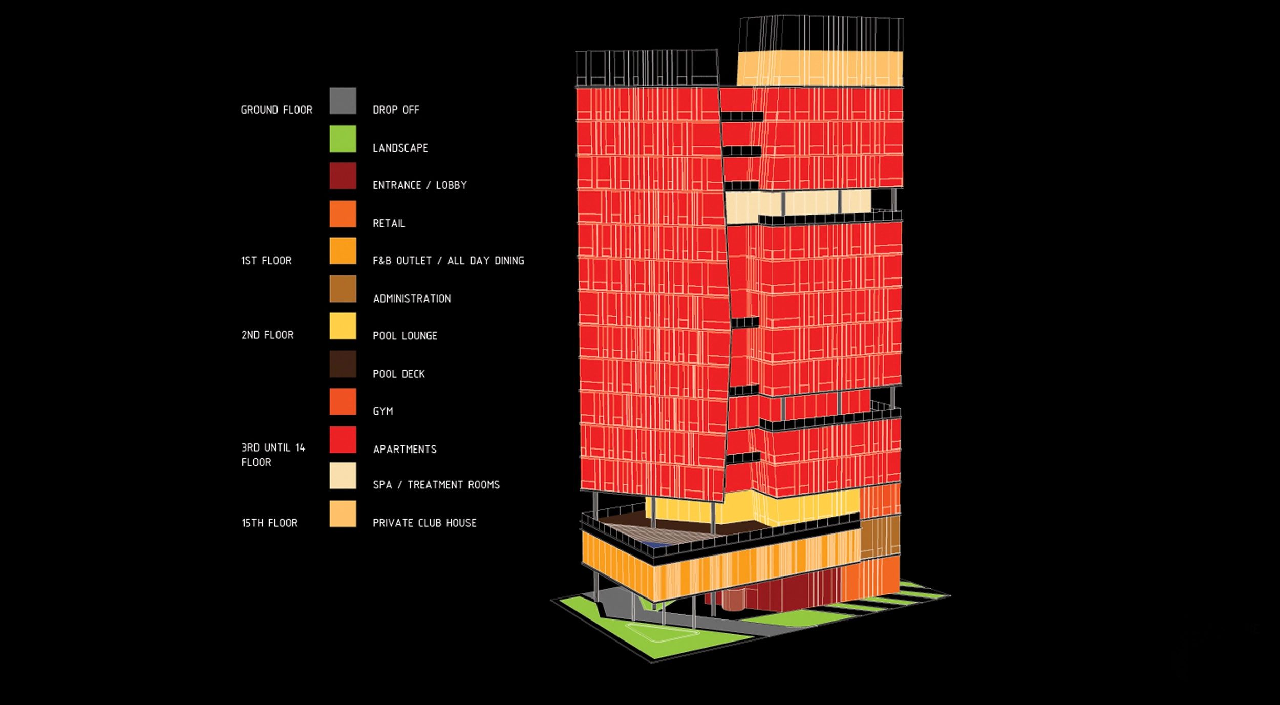 -GF: Drop off, Lobby, Reception, Lounge and Retail
