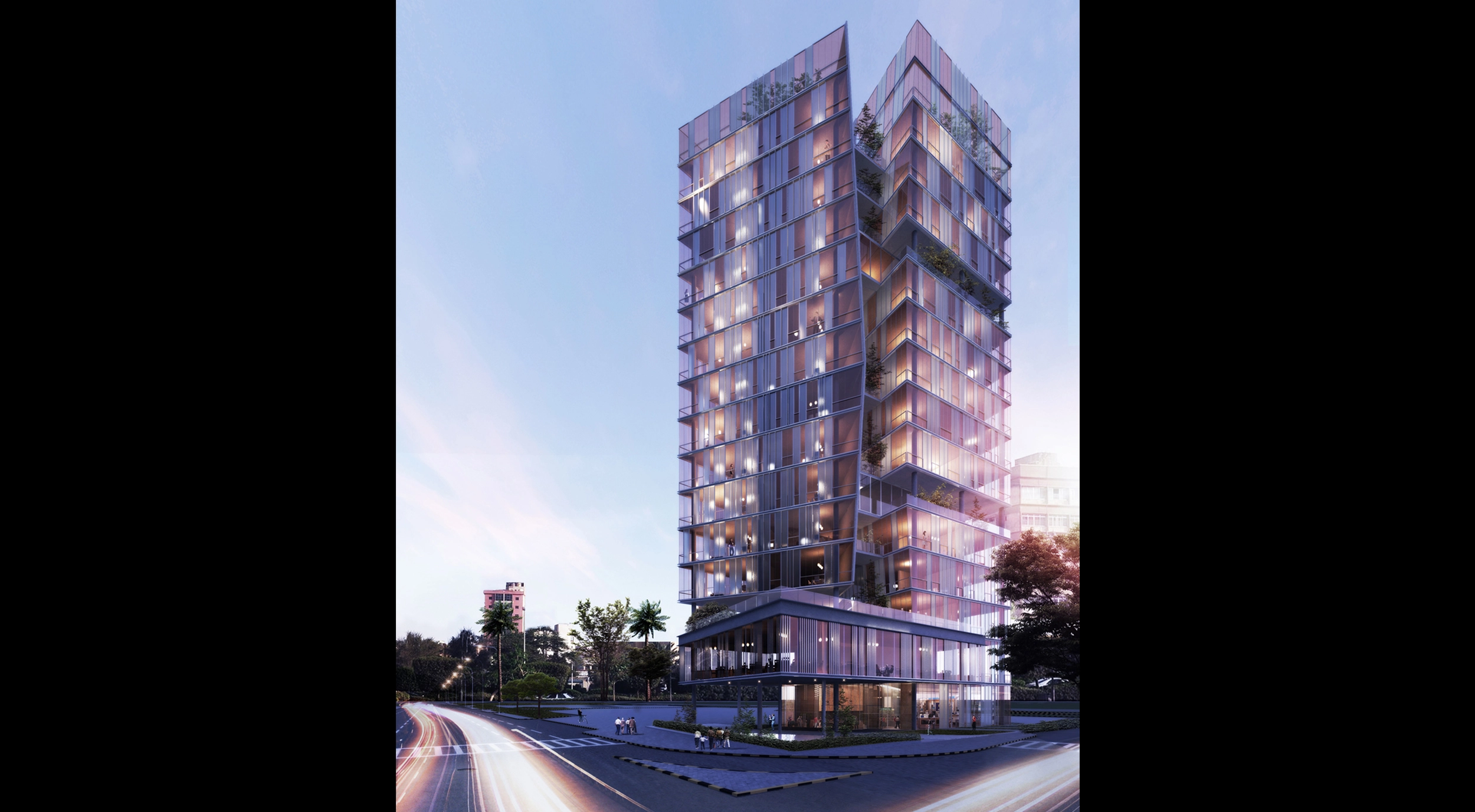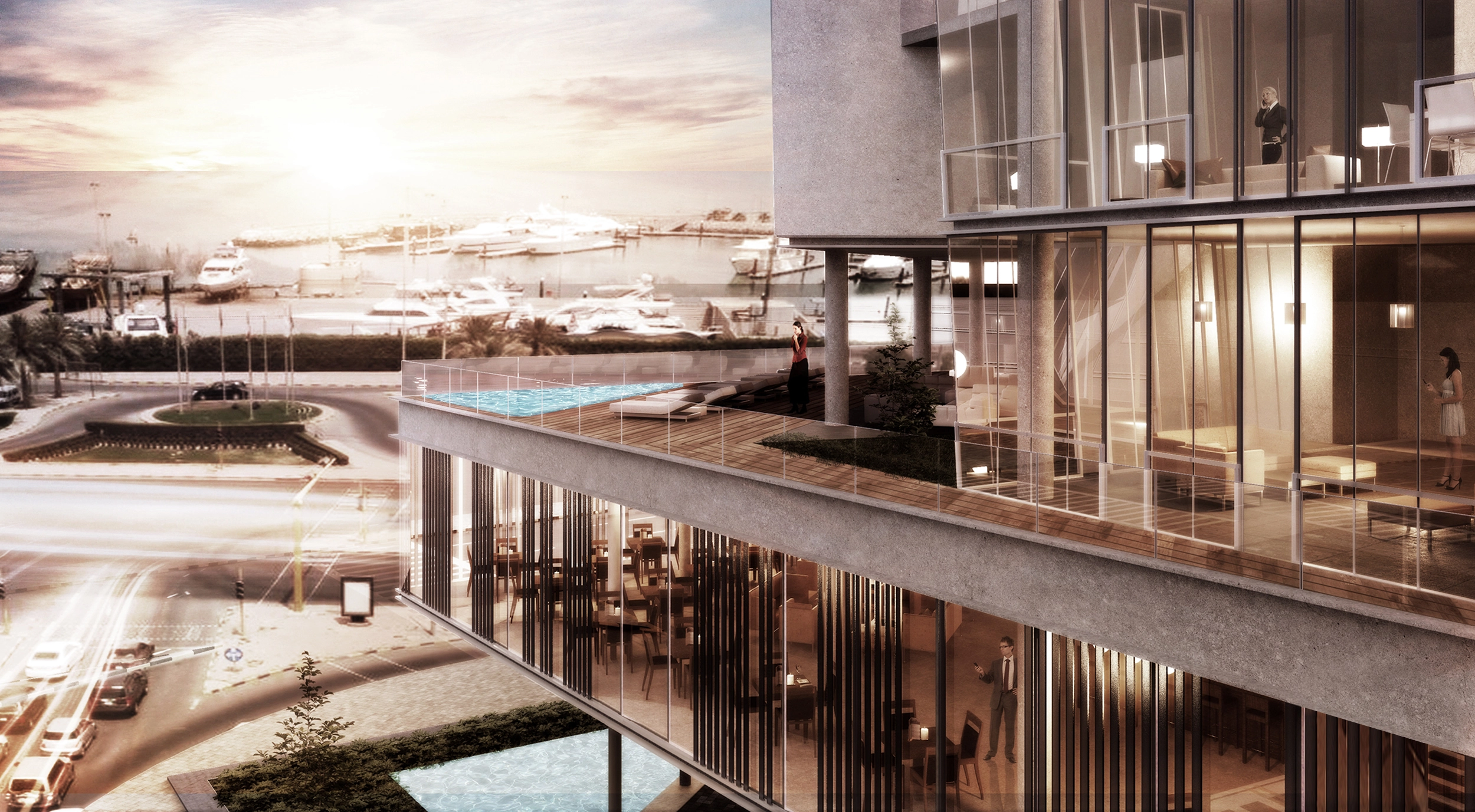 Situated on a corner lot, facing the Yacht Club of Salimiya, the project was conceived to have 4 corner units per floor, all of them with corner views.